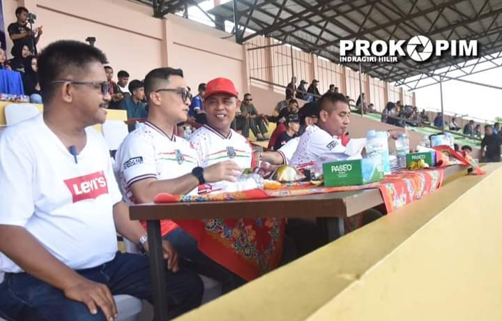 Pembukaan Turnamen Sepakbola Kapolres Cup II ini ditandai dengan tendangan bola oleh Bupati dan Kapolres Inhil.