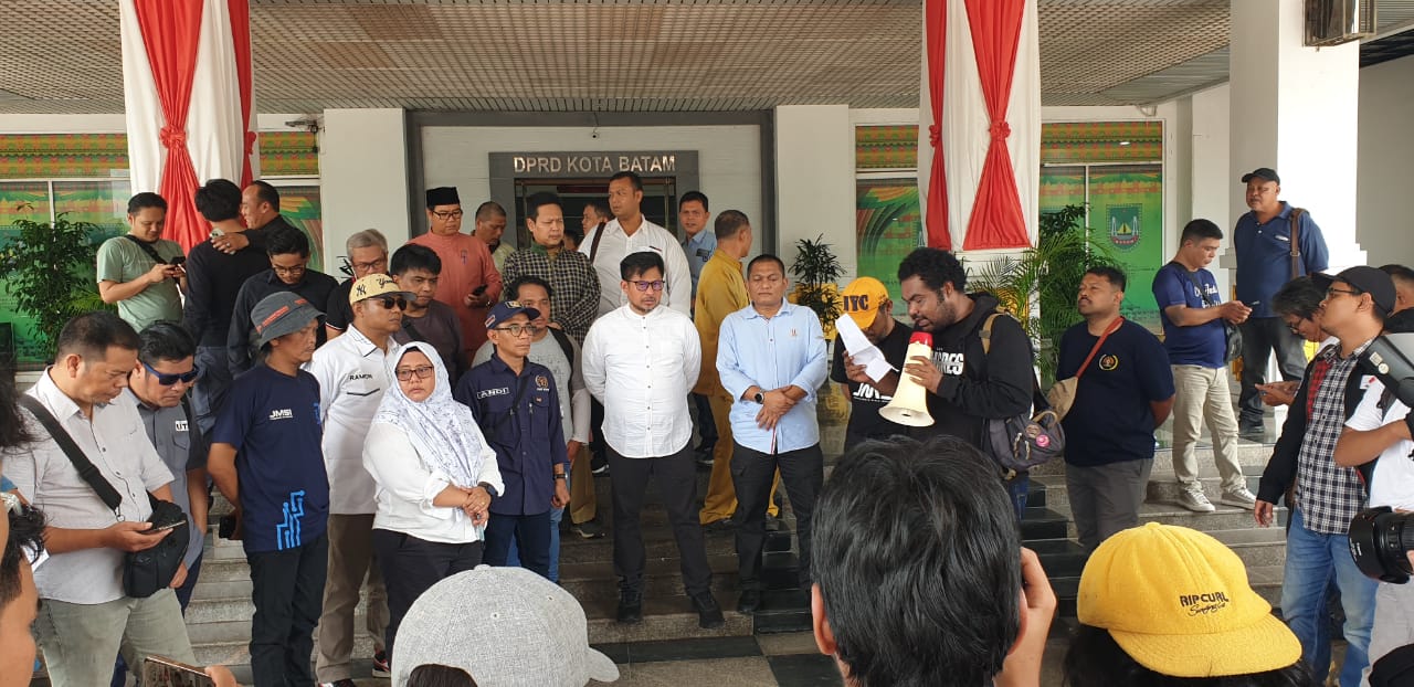 Sementara itu aksi damai ini puluhan wartawan itu untuk mengkritisi revisi UU Nomor 32 Tahun 2002 tentang Penyiaran yang tengah dibahas DPR RI. Unjuk rasa tersebut, diikuti langsung masing-masing ketua organisasi pers dan perusahaan pers, antara lain; Serikat Media Siber Indonesia (SMSI), Serikat Perusahaan Pers (SPS) Kepri, Jaringan Media Siber Indonesia (JMSI) Kepri, Ikatan Jurnalis Televisi Indonesia (IJTI), Persatuan Wartawan Indonesia (PWI) Kepri, Aliansi Jurnalis Independen (AJI) Batam, dan Pewarta Foto Indonesia (PFI). Mereka menuding sejumlah pasal dalam RUU versi Maret 2023 itu, problematik dan bakal melanggar kemerdekaan pers, sebagaimana diatur UU Nomor 40 Tahun 1999.