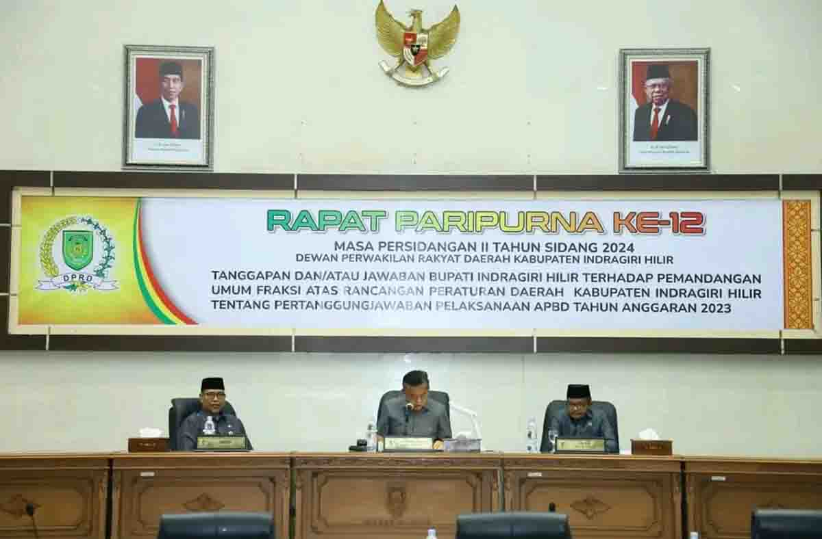 Adapun agenda rapat paripurna ini yaitu “Tanggapan dan/atau Jawaban Bupati Indragiri Hilir Terhadap Pemandangan Umum Fraksi Atas Rancangan Peraturan Daerah Kabupaten Indragiri Hilir Tentang Pertanggungjawaban Pelaksanaan APBD Tahun Anggaran 2023”.