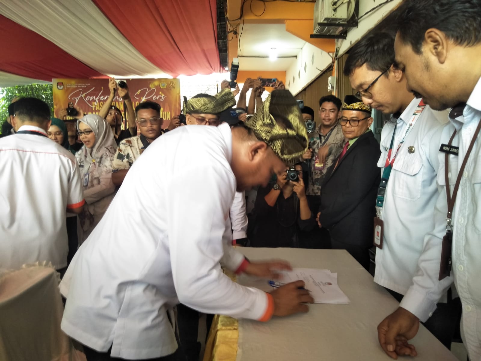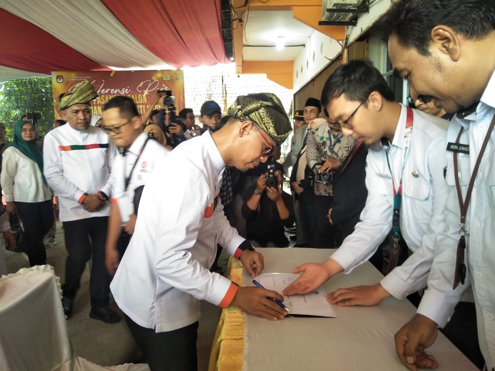 Bacalon Bupati dan Wakil Bupati Ing Iskandarsyah dan Rocky Marsiano Bawole didampingi ketua tim pemenangan Isrock dari koalisi partai Gerinda, Zaizulfikar (bang Boy).
