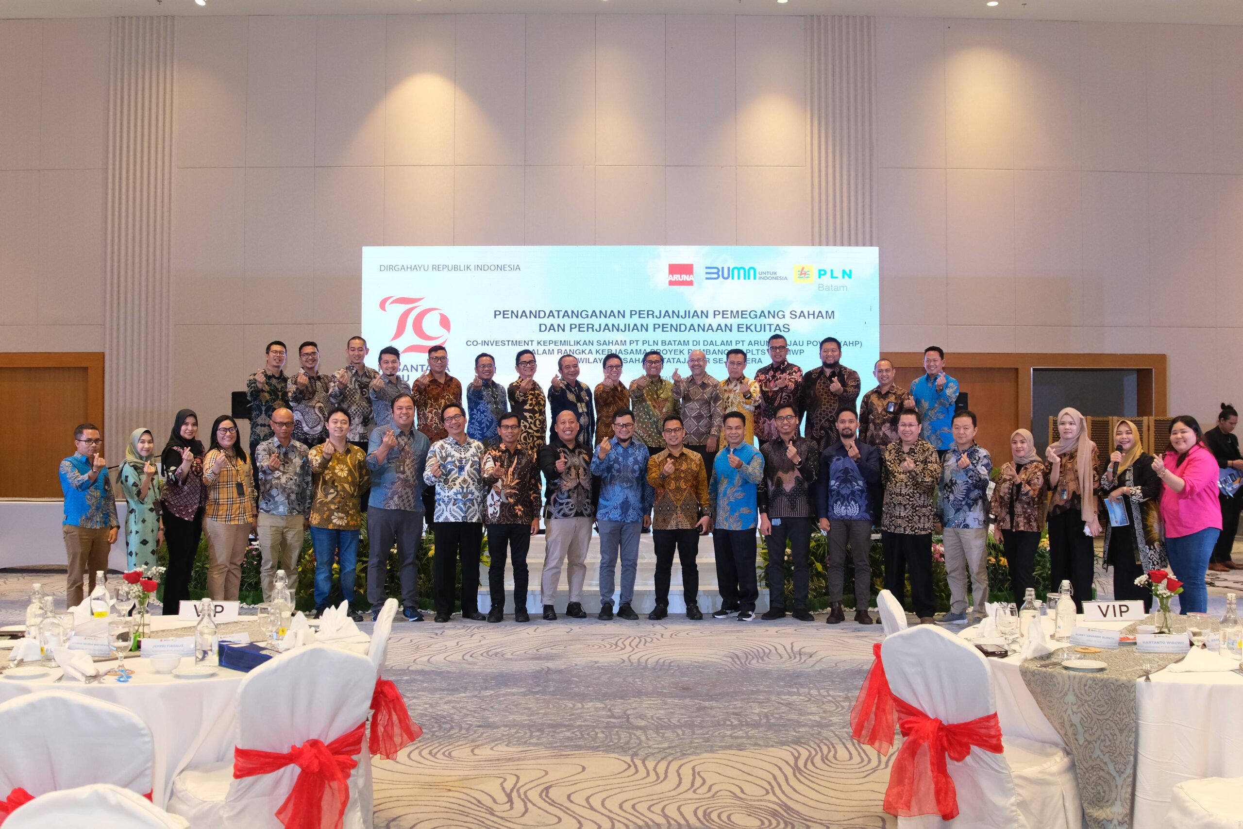 Perjanjian ini mencakup co-invesment kepemilikan saham PT PLN Batam di dalam PT Aruna Hijau Power (AHP) dalam rangka kerjasama proyek pembangkit pembangkit listrik tenaga surya (PTLS) 100 MWp di wilayah usaha PT Tatajabar Sejahtera. Kegiatan ini di hadiri langsung oleh Direktur Perencanaan Korporat dan Pengembangan Bisnis, PT PLN (Persero), Hartanto Wibowo dan Direktur Legal dan Manajemen Human Capital PT PLN (Persero), Yusuf Didi Setiarto yang hadir secara daring. Hadir juga Direktur Utama PT Aruna Cahaya Pratama Robby Eduardo Quento.