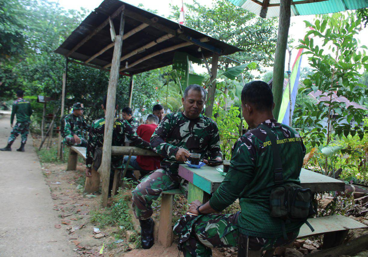 Personel satgas TMMD Serka Mudiono mengatakan semua senang ngopi. Jadi, dengan minum kopi semua melebur berbaur, mempererat keakraban antara anggota satgas TMMD dengan warga.
