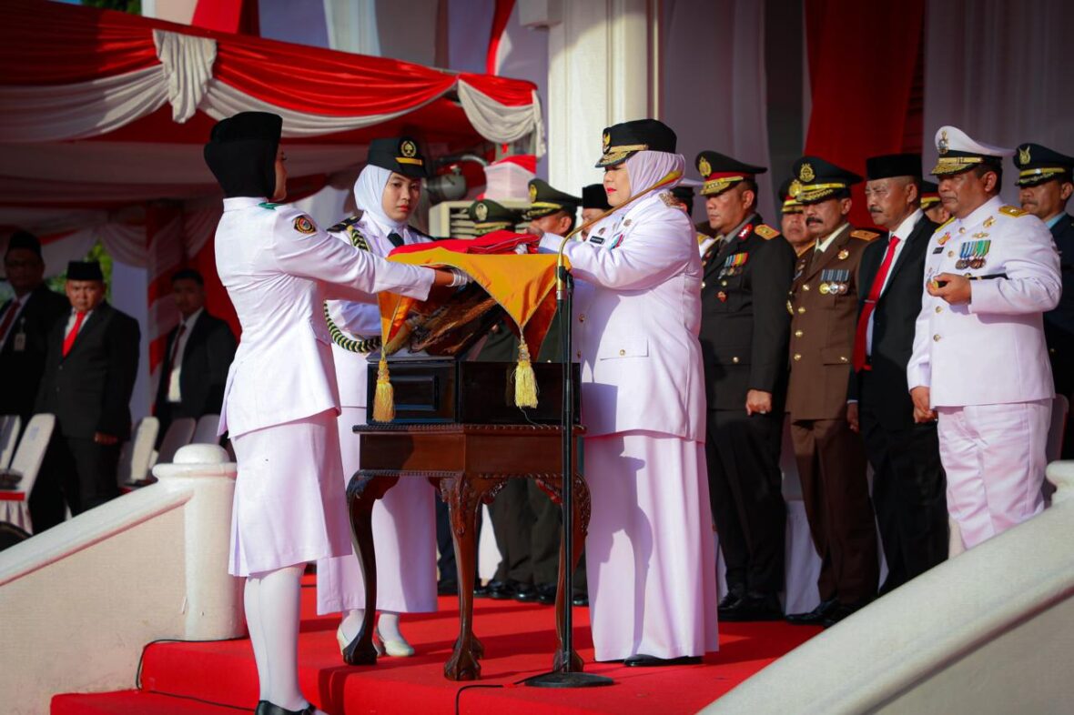 METROBATAM.COM, TANJUNGPINANG – Wakil Gubernur Provinsi Kepri, Marlin Agustina memimpin upacara Penurunan Bendera Merah Putih dalam rangka peringatan Hari Ulang Tahun (HUT) Republik Indonesia ke-79 di Gedung Daerah, Sabtu (17/8/2024).