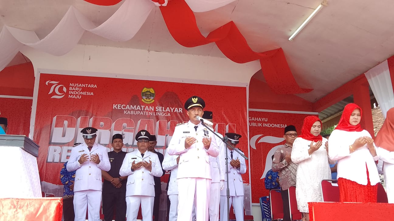 Metrobatam .com, Lingga – Memperingati Hari Ulang Tahun Republik Indonesia ke-79, Pemerintah Kecamatan Selayar, Kabupaten Lingga provinsi Kepulauan Riau,menggelar upacara pengibaran bendera merah putih dan pembacaan teks proklamasi,pada Sabtu (17/08/2024).
