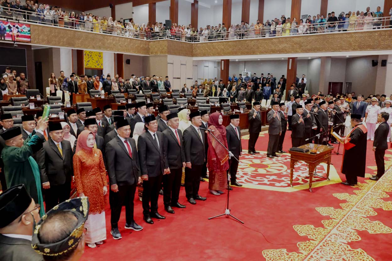 Membacakan sambutan Menteri Dalam Negeri RI, Gubernur Ansar menyampaikan ucapan selamat kepada para Anggota DPRD Provinsi Kepulauan Riau yang telah dilantik pada hari ini.