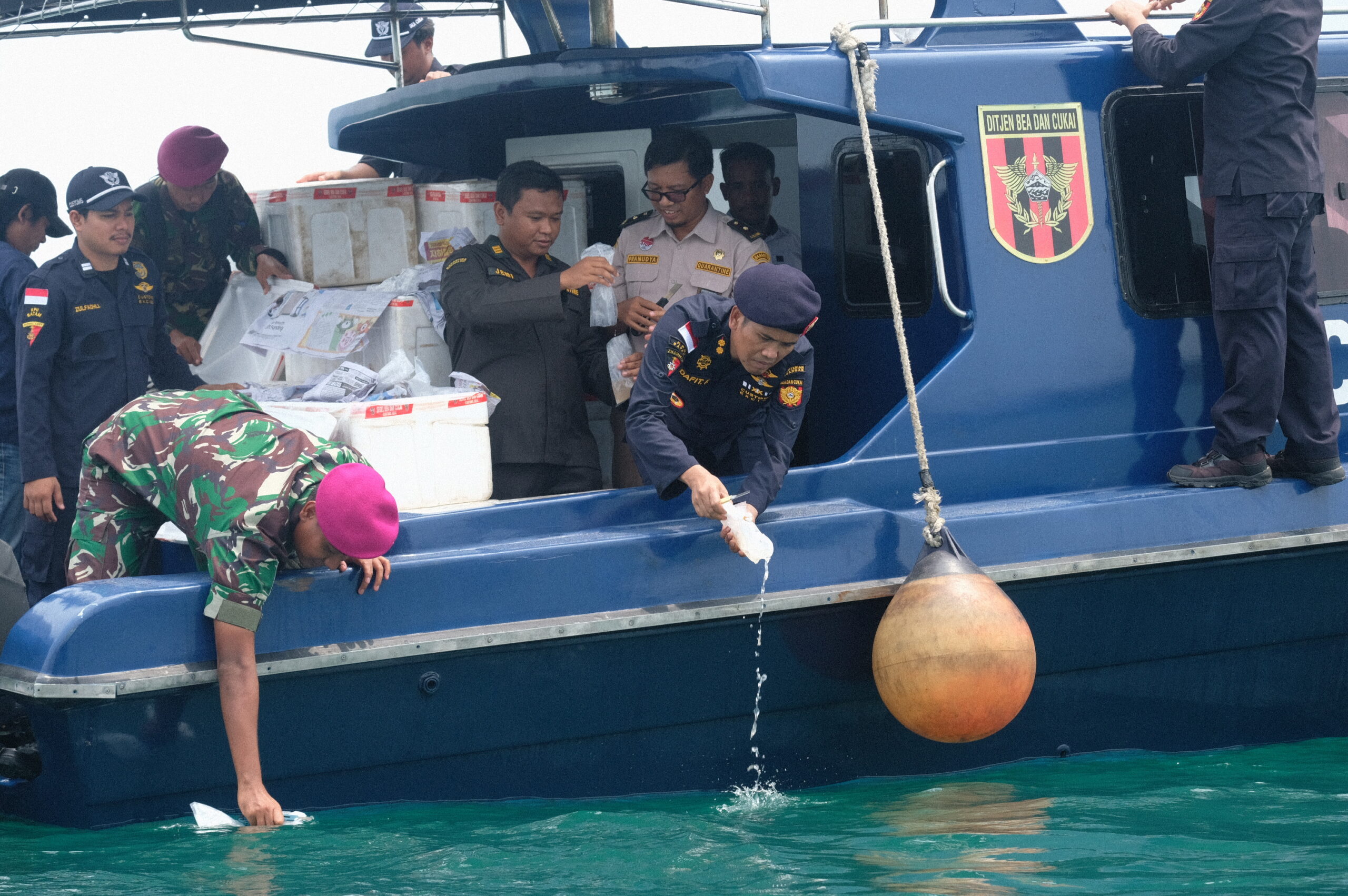 Atas penindakan tersebut, benih lobster langsung dilepasliarkan ke perairan laut. Pelepasliaran benih lobster dilakukan di wilayah perairan Jembatan 6 Barelang dilakukan langsung oleh Kepala Pangkalan Sarana Operasi Bea Cukai Batam, Dafit Kasianto, Perwira Staf Operasi Yonif 10 Marinir, Kapten Marinir Adi Yanuar, Kasubdit 4 Tipidter Ditreskrimsus Polda Kepri, Kompol Zamrul Aini, Ketua Tim Balai Perikanan Budidaya Laut Batam, Ipong Adiguna, Ketua Tim Kerja Penegakan Hukum Balai Karantina Hewan, Ikan, dan Tumbuhan Kepulauan Riau, Jemi Diporianto dan Ketua Tim Kerja Karantina Ikan, Pramudya D Irawanto.