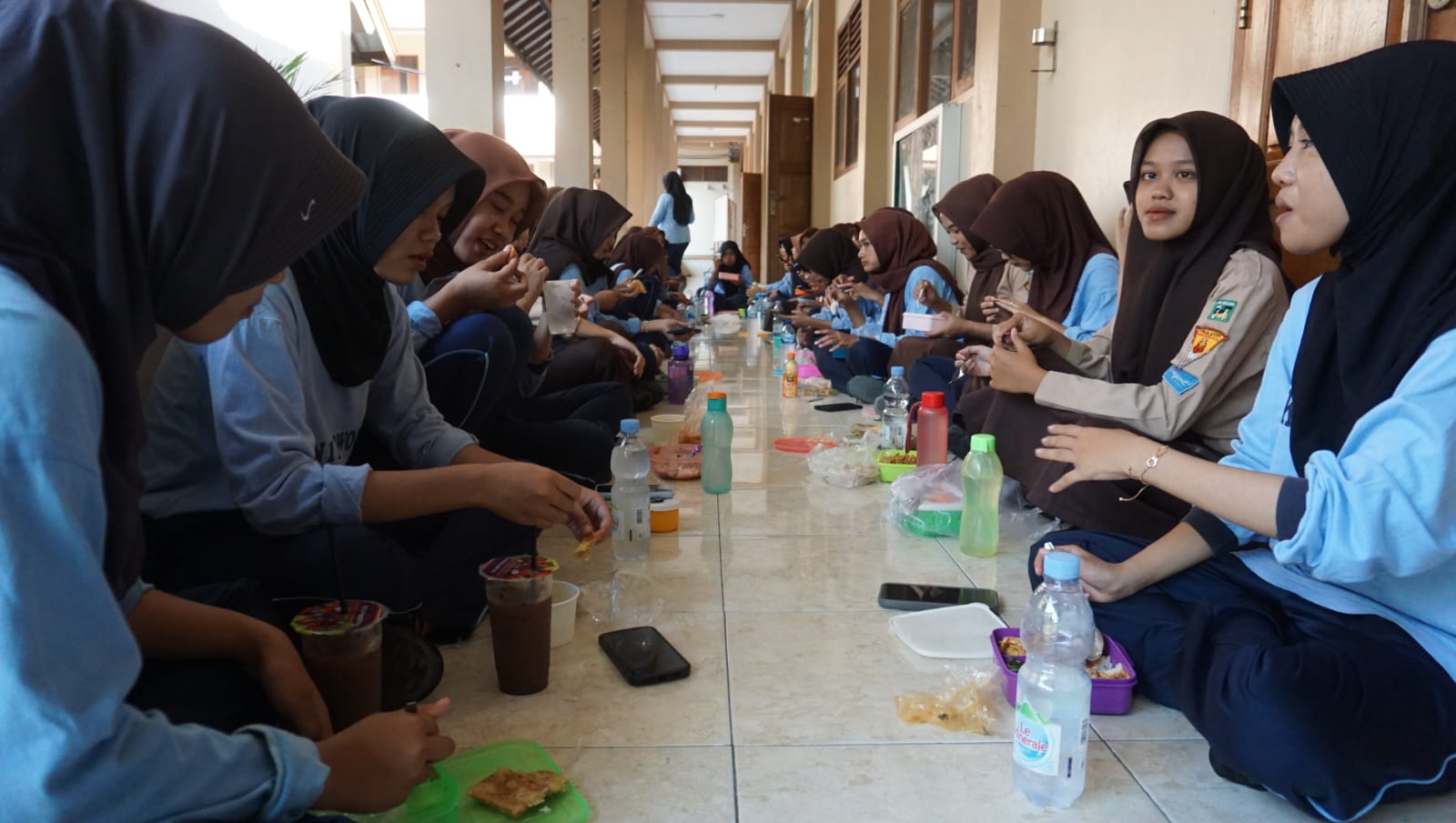 Setelah melaksanakan senam, sosialisaai dan serangkain kegiatan lain,seluruh warga sekolah guru pengajar karyawan dan para siswa siswi melaksanakan makan bersama, dengan bekal yang sudah disiapkan dari rumah.