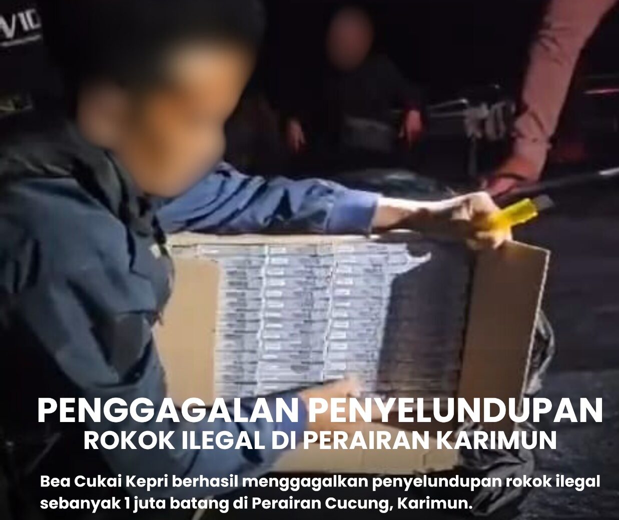 METROBATAM.COM, KARIMUN – Bea Cukai Kepulauan Riau Berhasil Menggagalkan Upaya Penyeludupan 1 Juta Batang Rokok Ilegal di Perairan Cucung Pada Hari Sabtu 26 Oktober 2024.