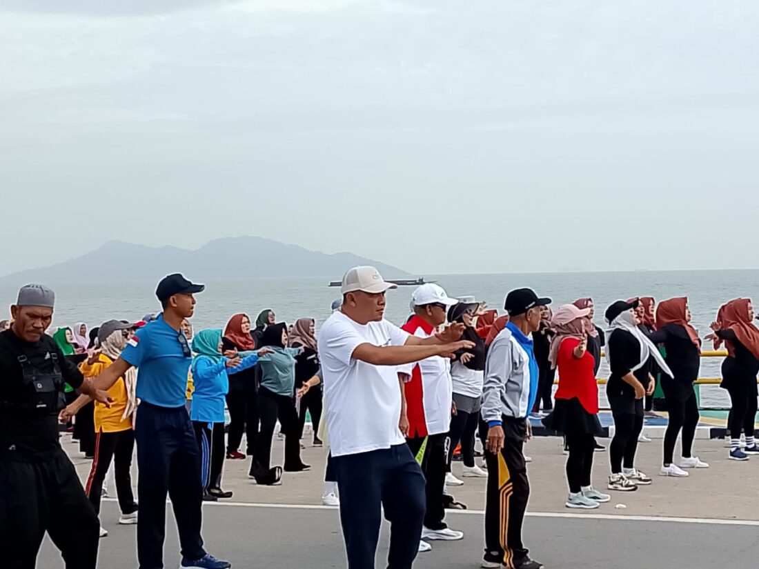 Ketua Perkumpulan Perhimpunan Pemuda Teluk Uma Yusrizal/Boim mengadakan senam sehat bersama Bupati dan Wakil Bupati terpilih menggelar senam sehat bersama warga Teluk Uma.