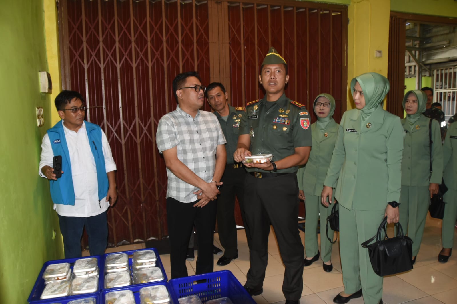 Dandim ditemani jajarannya melihat langsung persiapan yang dilakukan di dapur. Ratusan boks nasi nampak sudah disiapkan dan siap dibagikan.