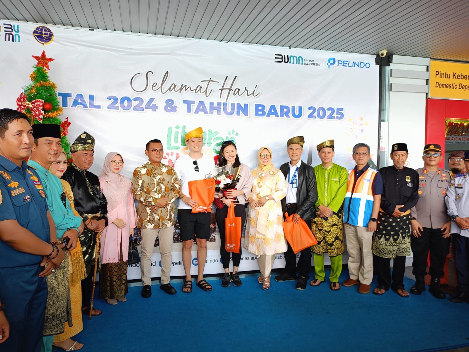 Ket Poto ; Branch Manager SPMT Tanjungpinang Tonny Hc Bersama PJ Wako Tanjungpinang Andri RS dengan MUSPIDA Kota Tanjungpinang Dan Propinsi Kepri saat Menyambut Turis Mancanegara Pertama yang Datang Di Awal Tahun 2025 di Terminal Penumpang Sri Bintan Pura