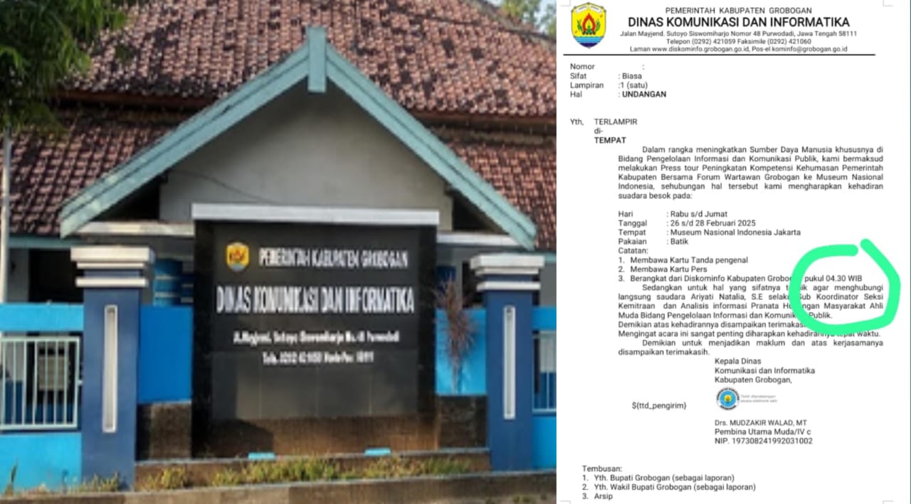 Hal itu diketahui berdasarkan surat undangan yang beredar nomor :B/400.14.5.6/45/Diskominfo/2025 yang ditandatangani oleh Kepala Diskominfo Kabupaten Grobogan Mudzakir Walat pada Selasa, (25/2/2025)
