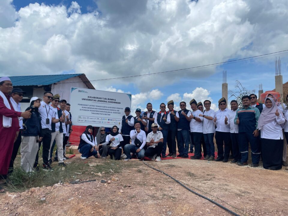 METROBATAM.COM, BATAM – Dalam upaya menghadirkan energi listrik dan air bersih berkelanjutan, PT PLN Batam sebagai Anak Perusahaan dari PT PLN (Persero) tergabung dalam 23 BUMN yang bersinergi dengan Universitas Jenderal Soedirman untuk membangun sistem Reverse Osmosis (RO) air laut dan Pembangkit Listrik Tenaga Surya (PLTS) di Pondok Pesantren Darussalam Al-Gontory, Batam.