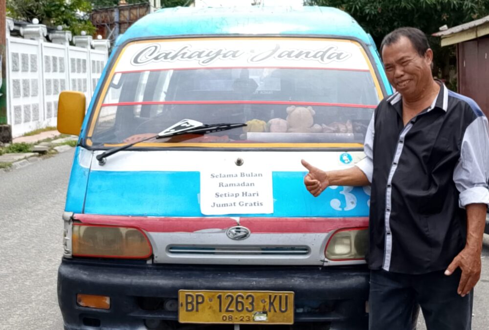 Marpaung mengatakan, saya ingin berbagi di bulan ramadhan tahun ini terkhususnya pada hari Jumat berkah, dengan plat nomor kendaraan. BP 1263 KU, berjulukan Cahaya Janda siap mengantar anda tujuan Balai-Meral.