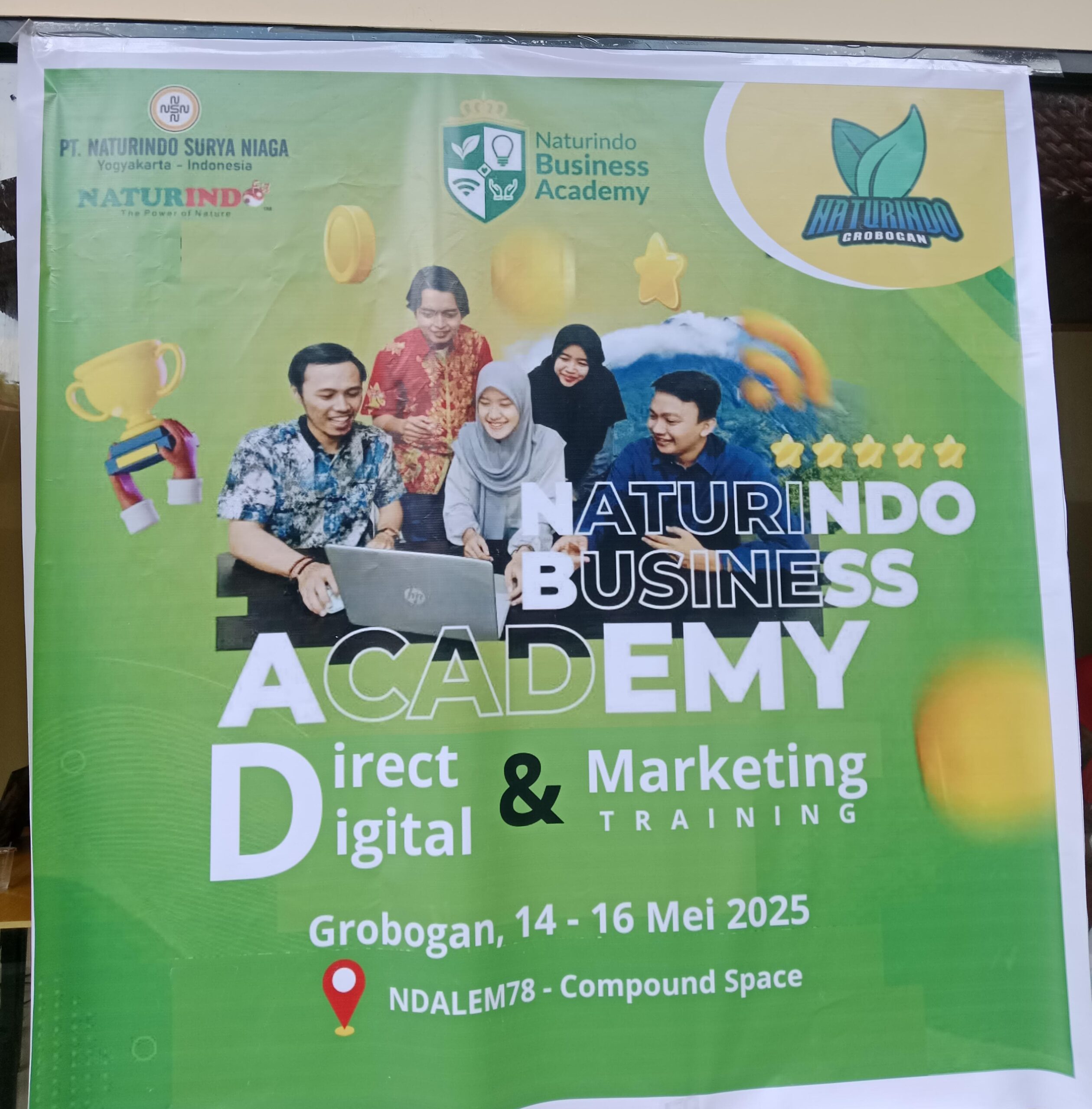 Metrobatam.com || Grobogan – Naturindo Kantor Distributor Grobogan menggelar Naturindo Business Academy Direct Digital & Marketing Training yang diselenggarakan di Ndalem 78 Purwodadi Grobogan, 14-16 Mei 2025.