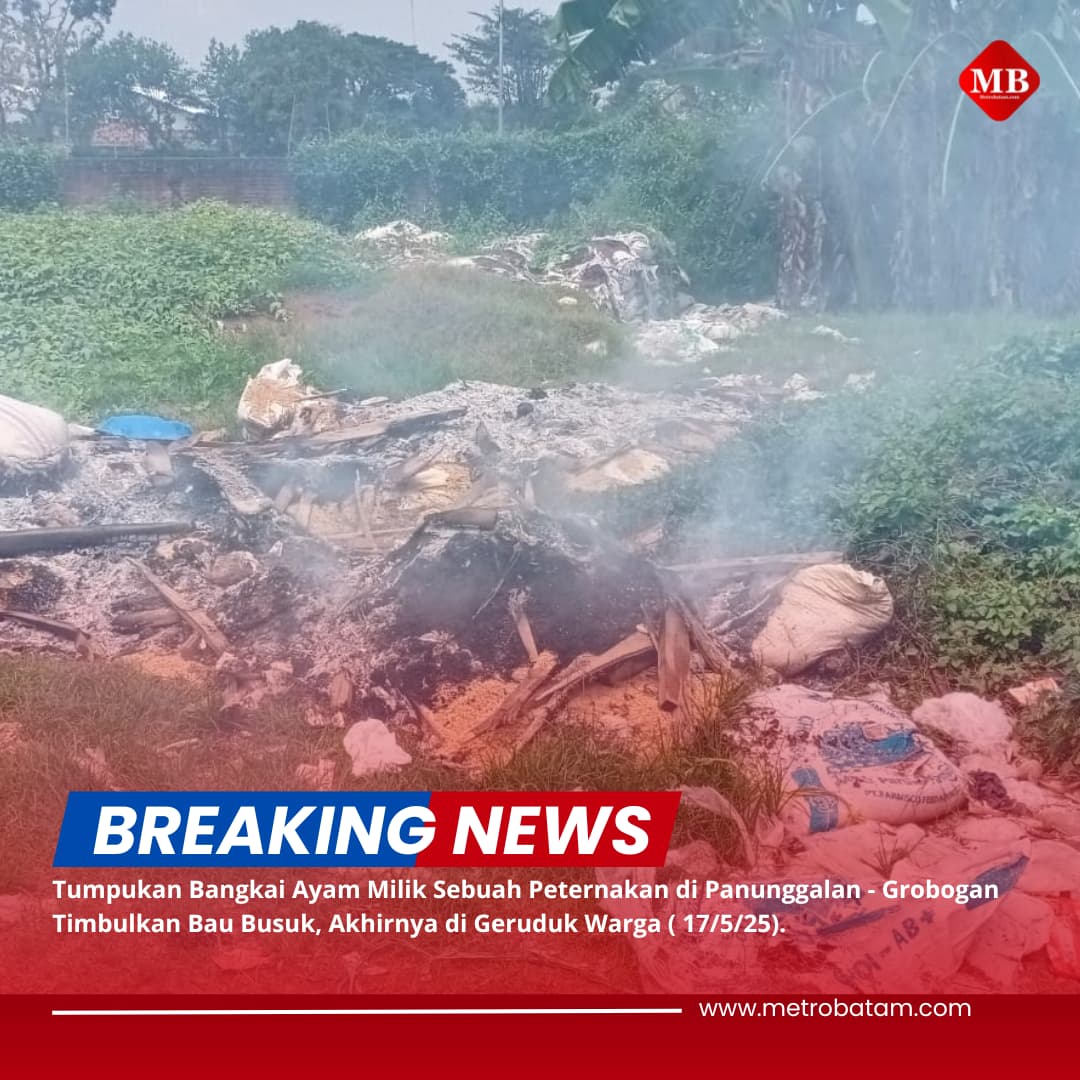 Metrobatam.com || Grobogan – Dilansir dari iNewsBoyolali.id puluhan emak-emak dan warga di Desa Panunggalan, Kecamatan Pulokulon, Grobogan, menggeruduk sebuah kandang ayam pada Sabtu (17/5) siang. Aksi ini dipicu bau menyengat dari tumpukan bangkai ayam yang dibiarkan terbakar selama lebih dari tiga minggu tanpa dikubur.