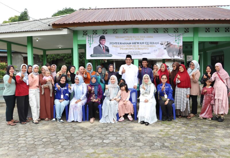 METROBATAM.COM, BINTAN – Bupati Bintan Roby Kurniawan menyerahkan sapi kurban Presiden RI Prabowo Subianto untuk disembelih di Masjid Jama’ Nurul Amin Kampung Sekera, Tanjung Uban Utara, Jumat (06/06).