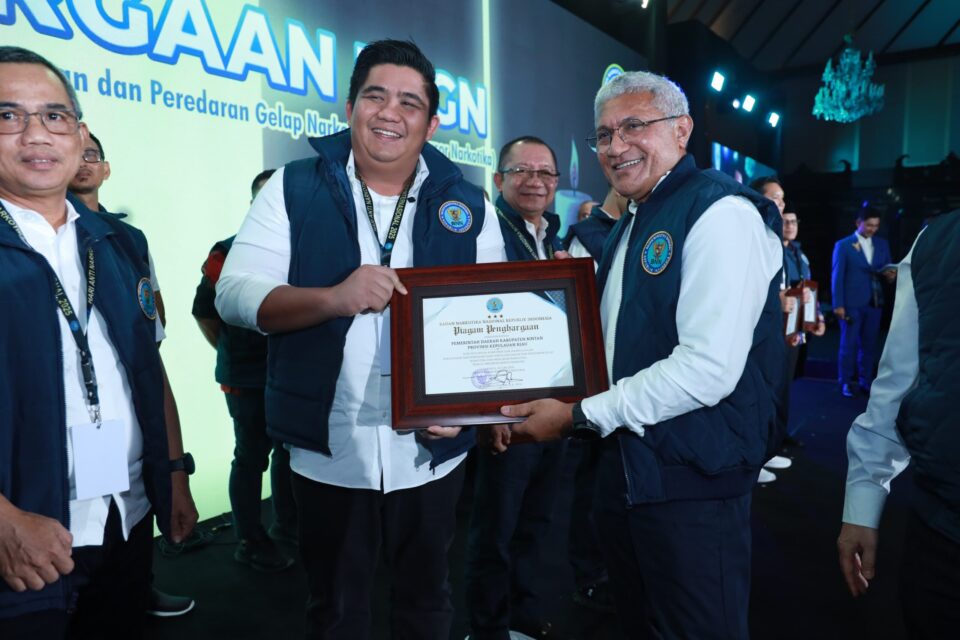 METROBATAM.COM, BINTAN – Sebuah catatan membanggakan kembali dicapai Bupati Bintan Roby Kurniawan. Roby menjadi salah satu dari tiga Bupati se Indonesia yang diberikan penghargaan oleh Badan Narkotika Nasional (BNN) RI dengan indikator penerapan P4GN (Pencegahan, Pemberantasan, Penyalahgunaan dan Peredaran Gelap Narkotika) sejak dini pada remaja.