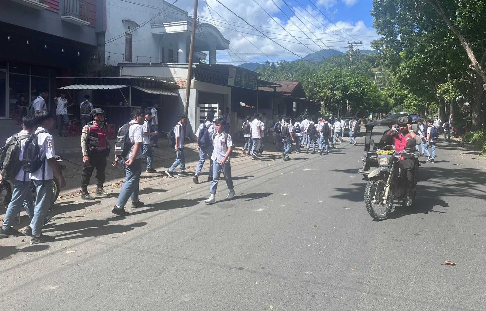 “Kami hadir di sini untuk memastikan situasi tetap aman dan kondusif. Kegiatan ini merupakan bentuk komitmen Polres Kotamobagu dalam menciptakan rasa aman di lingkungan sekolah, serta mencegah terulangnya aksi kekerasan antar pelajar”, ujar AKP Pouldy.