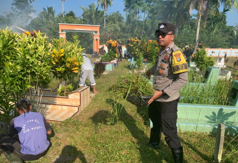 METROBATAM.COM, NATUNA – Dalam upaya mempererat sinergi antara Polri dan masyarakat, Kapolsek Bunguran Timur AKP Nellay Boy yang di wakili oleh Bhabinkamtibmas Polsek Bungur Timur Brigadir Ozzy Agus Syahputra, melaksanakan kegiatan kerja bakti bertajuk “Gugur Gunung Bhabinkamtibmas Bersama Warga” di Tempat Pemakaman Umum (TPU) Pering, bersama warga binaannya, Minggu (27/07/2025).