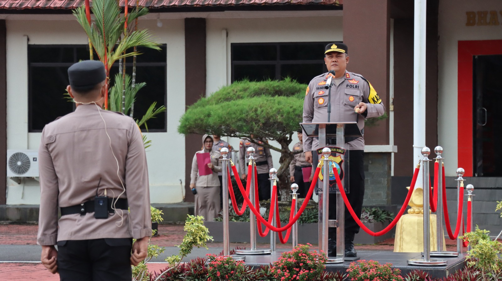 AKBP Pahala Martua Nababan, S.H., S.I.K., M.H., Kapolres Lingga pada Apel gelar pasukan Ops Patuh Seligi 2025 membacakan amanat Kapolda kepri menekankan pentingnya peran aktif seluruh personel dalam menciptakan Keamanan, Keselamatan, Ketertiban dan Kelancaran Lalu Lintas (Kamseltibcarlantas), tidak hanya melalui penegakan hukum tetapi juga lewat edukasi dan pencegahan yang humanis.