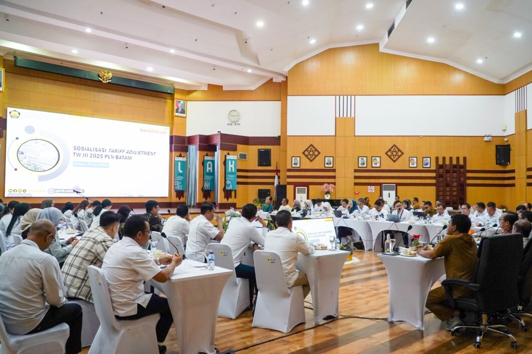 METROBATAM.COM, BATAM – Dalam rangka mendukung kebijakan pemerintah terkait penyesuaian tarif tenaga listrik (tariff adjustment) bagi pelanggan rumah tangga mampu dan sangat mampu dengan daya 3.500 Volt Ampere (VA) ke atas (golongan R2 dan R3), serta pelanggan dari golongan pemerintah (P1, P2, dan P3), PT PLN Batam menggelar kegiatan diskusi publik bersama pelanggan guna memastikan informasi kebijakan tersampaikan secara transparan dan menyeluruh kepada seluruh pemangku kepentingan.