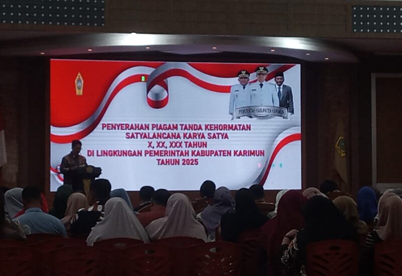 METROBATAM.COM, KARIMUN – Bupati Karimun Ing Iskandarsyah menyerahkan secara simbolis Piagam Tanda Kehormatan Satyalancana Karya, X, XX, dan XXX tahun kepada Pegawai Negeri Sipil dilingkungan pemerintah Kabupaten Karimun, Kamis 14 Agustus 2025 bertempat di Gedung Nilam Sari, Kantor Bupati Karimun.