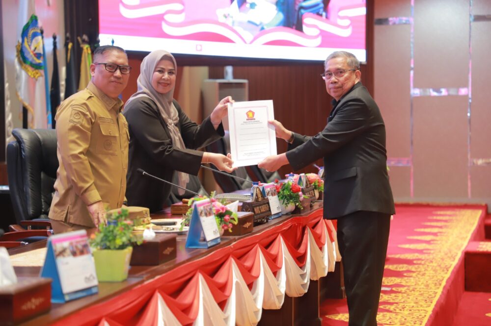 Paripurna dengan agenda Pendapat Akhir Fraksi-Fraksi Dewan Perwakilan Rakyat Daerah Provinsi Kepulauan Riau Terhadap Rancangan Peraturan Daerah Tentang Laporan Pertanggungjawaban Pelaksanaan Anggaran Pendapatan dan Belanja Daerah Provinsi Kepulauan Riau Tahun Anggaran 2024 dipimpin Wakil Ketua I DPRD Provinsi Kepulauan Riau Dra. Hj. Dewi Kumalasari, M.Pd. dan dihadiri oleh Wakil Gubernur Provinsi Kepulauan Riau Nyanyang Haris Pratamura, SE., M.Si.