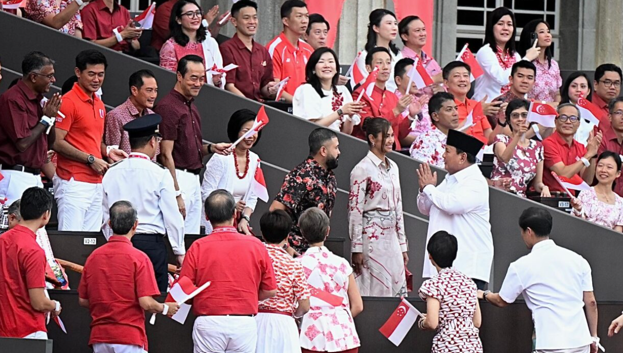 Sesaat sebelum acara dimulai, Presiden Prabowo kemudian diundang dan diperkenalkan kepada publik Singapura yang hadir untuk menuju panggung kehormatan. “Dan bergabung bersama kita sekarang adalah Yang Mulia Prabowo Subianto, Presiden Republik Indonesia. Bapak Prabowo dilantik sebagai Presiden Ke-8 Republik Indonesia pada 20 Oktober 2024,” ucap pewara yang kemudian disambut oleh riuh penonton saat Presiden tiba.