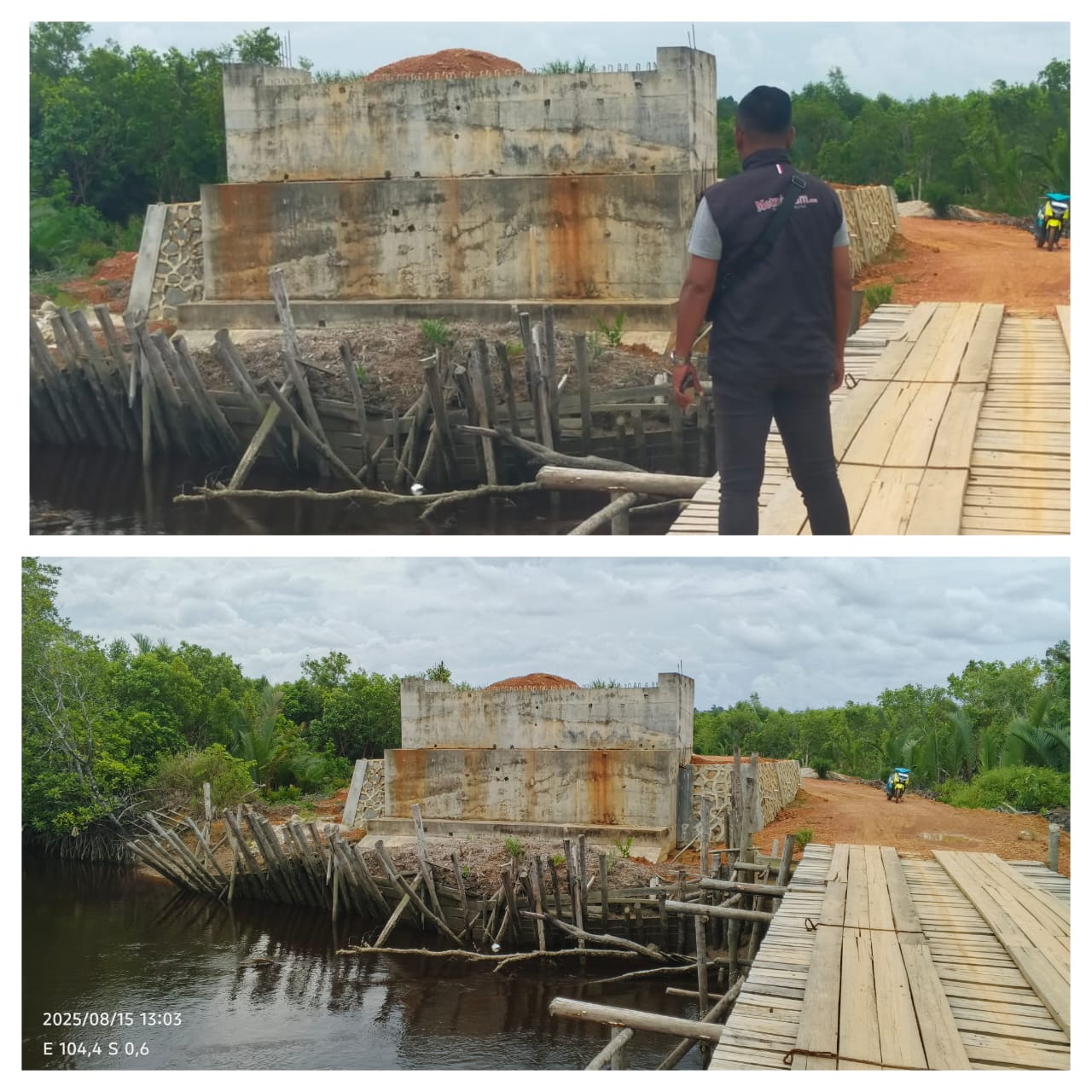 Tahap awal pekerjaan dimulai pada 2022, dilanjutkan tahap berikutnya di 2023. Namun, meski telah menguras anggaran miliaran rupiah, kondisi di lapangan pada Jumat (15/8/2025) menunjukkan pekerjaan terhenti. Tiang pancang berdiri tanpa kelanjutan struktur, akses jalan menuju jembatan dibiarkan rusak, dan material yang seharusnya terpasang justru tidak ditemukan di lokasi.