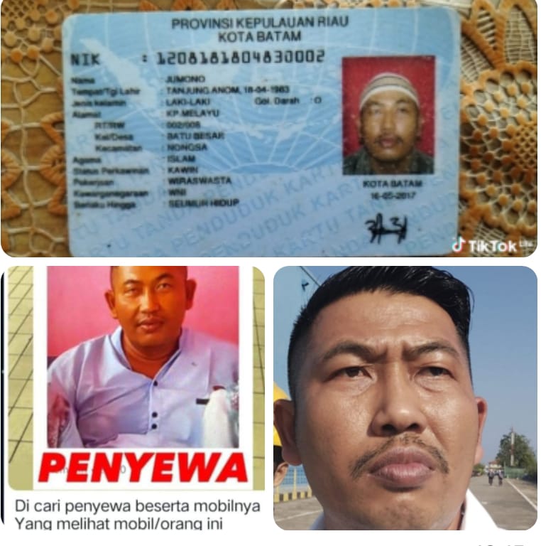 METROBATAM.COM, BATAM-KEPRI – Aksi penipuan dengan modus agen rental mobil kembali menghebohkan Provinsi Kepulauan Riau. Seorang pria bernama Jumono kini menjadi buronan setelah diduga menggelapkan uang tunai dan sejumlah kendaraan milik warga, dengan total kerugian mencapai miliaran rupiah.