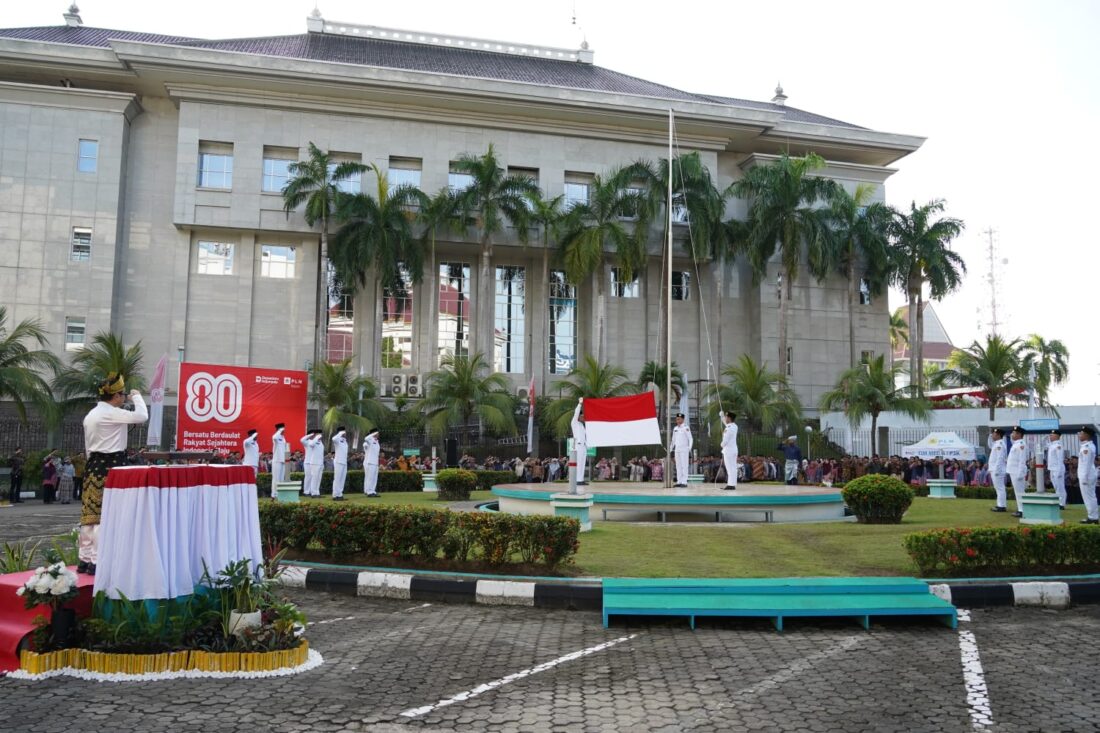 METROBATAM.COM, BATAM – PT PLN Batam menggelar upacara bendera dalam rangka memperingati Hari Ulang Tahun ke-80 Republik Indonesia, Minggu (17/8), di Kantor Korporat PLN Batam.
