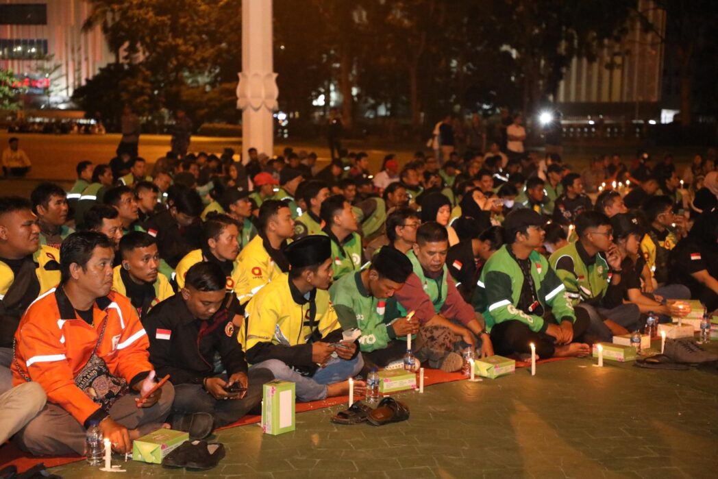 Aksi ini ditujukan untuk mengenang almarhum Affan Kurniawan, driver online yang meninggal di Jakarta, Rusdamdiansyah di Makassar, serta Iko Juliant Junior, mahasiswa Universitas Negeri Semarang. Nama mereka larut dalam doa, ditemani cahaya lilin yang memancar hangat di tengah kerumunan.