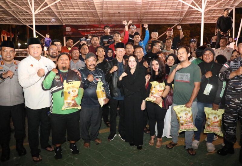 Malam penuh cahaya itu ditutup dengan pembagian 600 kantong beras kepada masyarakat, sebagai wujud kepedulian nyata selain doa.