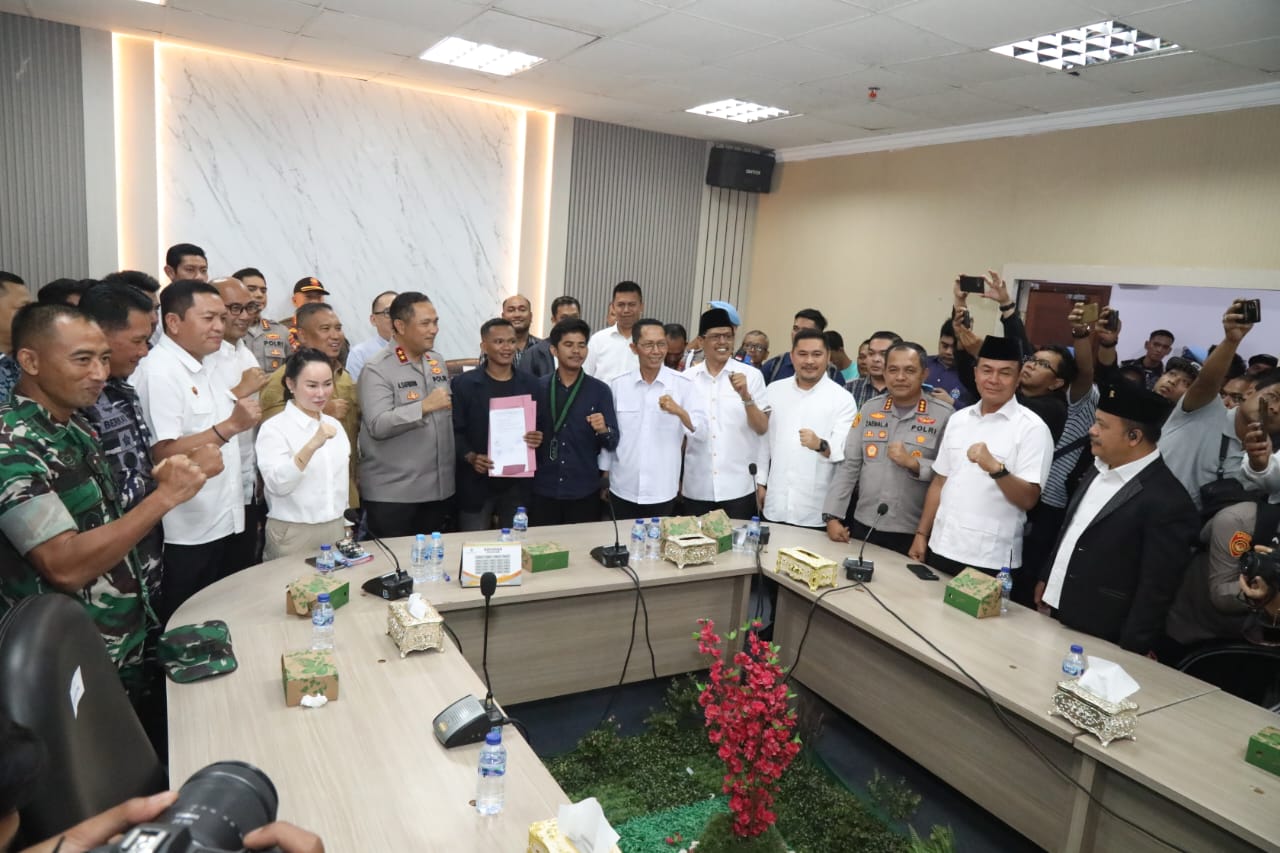 Pada akhir pertemuan, mahasiswa meminta Kapolda Kepri, Wagub Kepri dan Walikota Batam ikut menandatangani tuntutan mereka. (rh)
