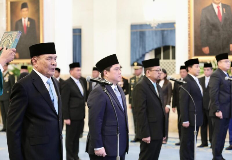 Dalam prosesi itu, yang berlangsung tepat pada pukul 15.00 WIB, Presiden Prabowo memimpin pengambilan sumpah pejabat-pejabat baru tersebut.