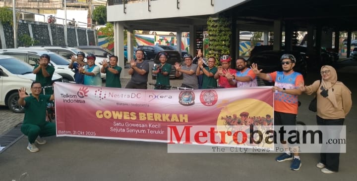 BATAM, METROBATAM.COM – Telkom Indonesia bersama Netra Data Center, Nxera, Teman Ngopi Cycle Club (TNCC), Komunitas Sedekah Jumat (Sejuk) Batam dan Jurnalis se-Provinsi Kepulauan Riau (Kepri) mengadakan olahraga bersepeda sekaligus aksi sosial pada Jumat (31/10/2025).
