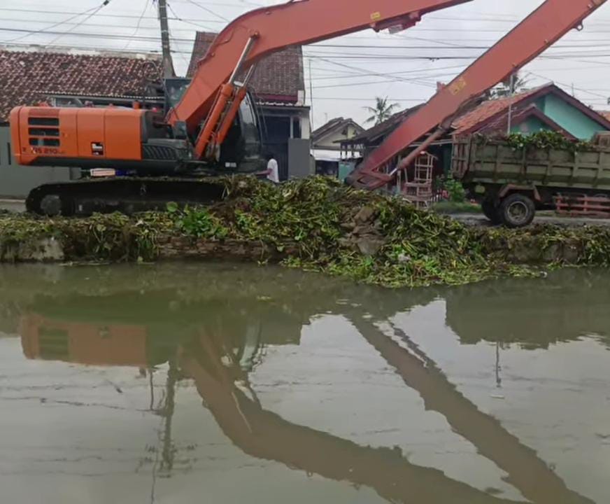 Kegiatan ini menggunakan alat berat untuk membersihkan endapan lumpur, sampah, dan tanaman liar yang menghambat aliran air.