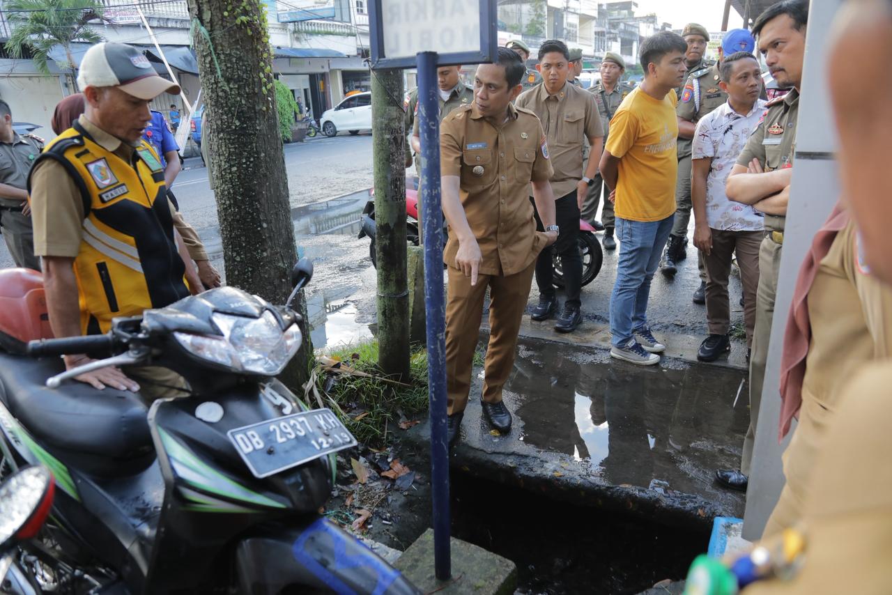 Tak hanya itu, Wali Kota juga melihat genangan air disepanjang Jalan Kartini yang terjadi akibat endapan air yang tersumbat oleh tumpukan sampah dalam drainase di depan Pertokoan.