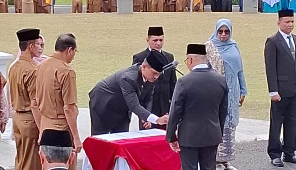 BUKITTINGGI, METROBATAM.COM — Proses mutasi dan rotasi kembali bergulir di lingkungan Pemerintah Kota Bukittinggi. 19 pejabat dilantik dan diambil sumpahnya, di Lapangan Balaikota, Senin (27/10/2025).