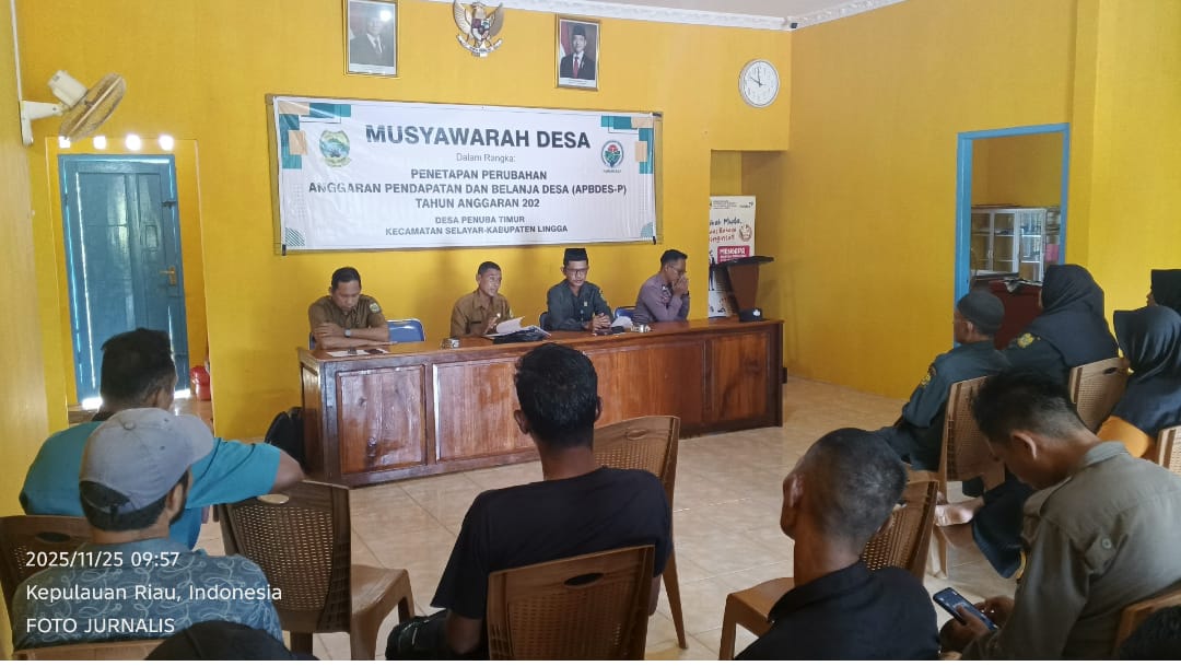 Metrobatam.com, Lingga – Pemerintah Desa Penuba Timur, Kecamatan Selayar, Kabupaten Lingga, menggelar rapat paripurna penetapan dan pengesahan Anggaran Pendapatan dan Belanja Desa (APBDes) Perubahan Tahun 2025 pada Selasa (25/11/2025).