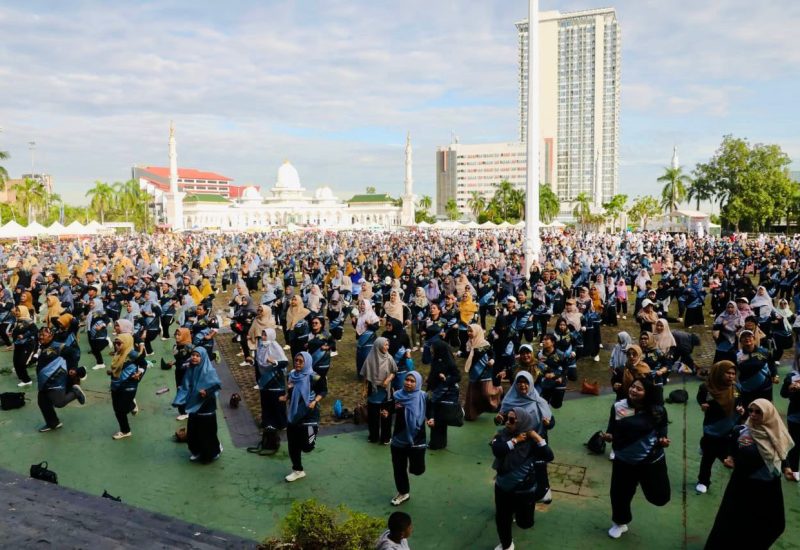 METROBATAM.COM, BATAM — Ribuan guru dan pelajar memadati Dataran Engku Putri, Batamcentre, untuk mengikuti Senam Sehat dalam rangka Hari Ulang Tahun (HUT) ke-80 Persatuan Guru Republik Indonesia (PGRI) dan peringatan Hari Guru Nasional 2025, Sabtu (29/11/2025).