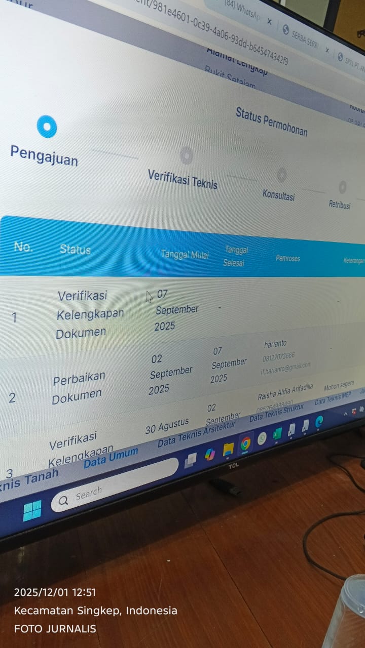 Metrobatam.com, Lingga — Proses pengurusan Persetujuan Bangunan Gedung (PBG) di Kabupaten Lingga kembali menjadi sorotan publik. Seorang pengusaha lokal, Harianto, Direktur PT Ananda Sukses Gemilang, mengungkapkan kekecewaannya lantaran izin pembangunan yang diajukan tak kunjung selesai meski telah berlangsung hampir lima tahun.