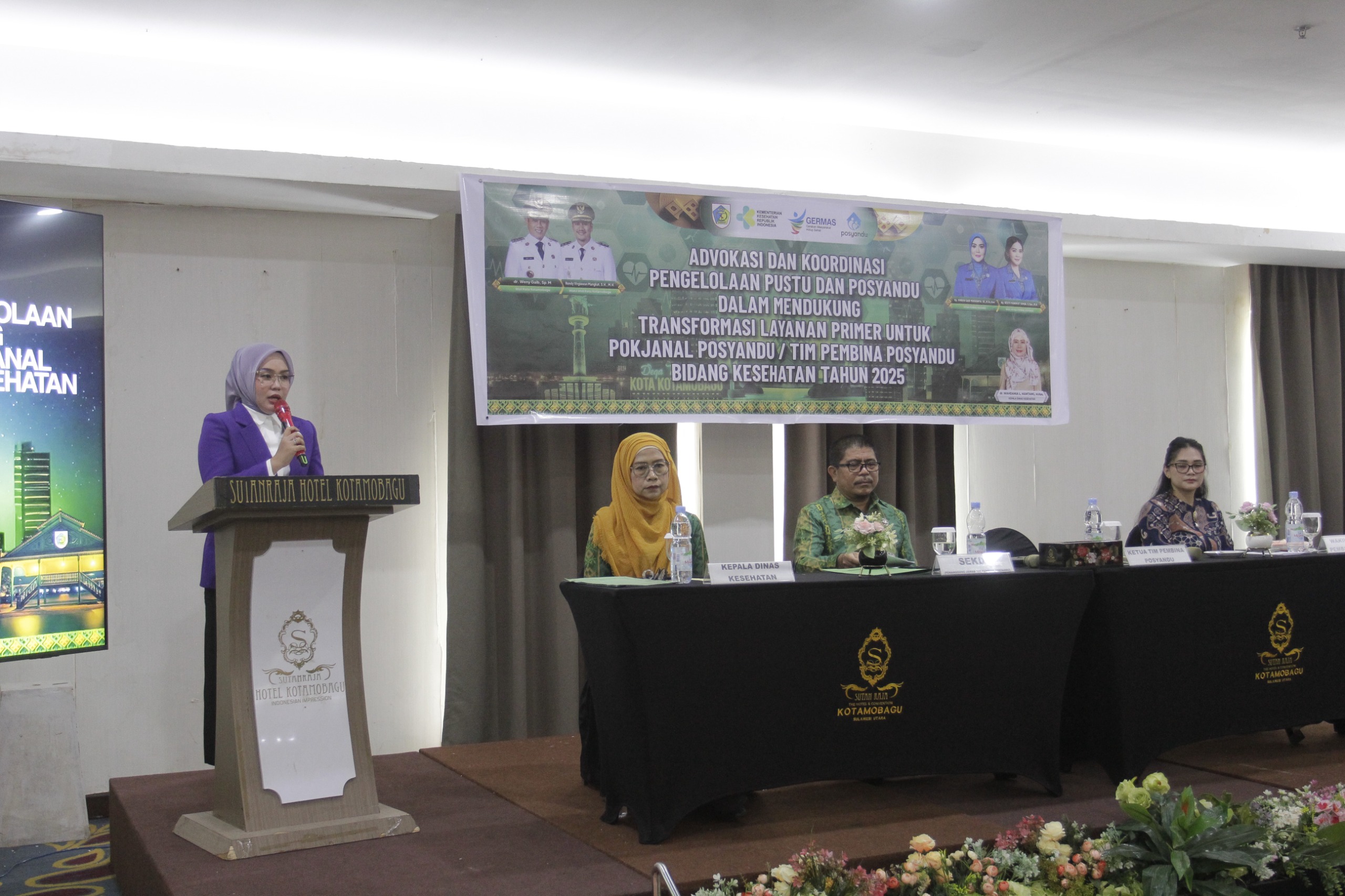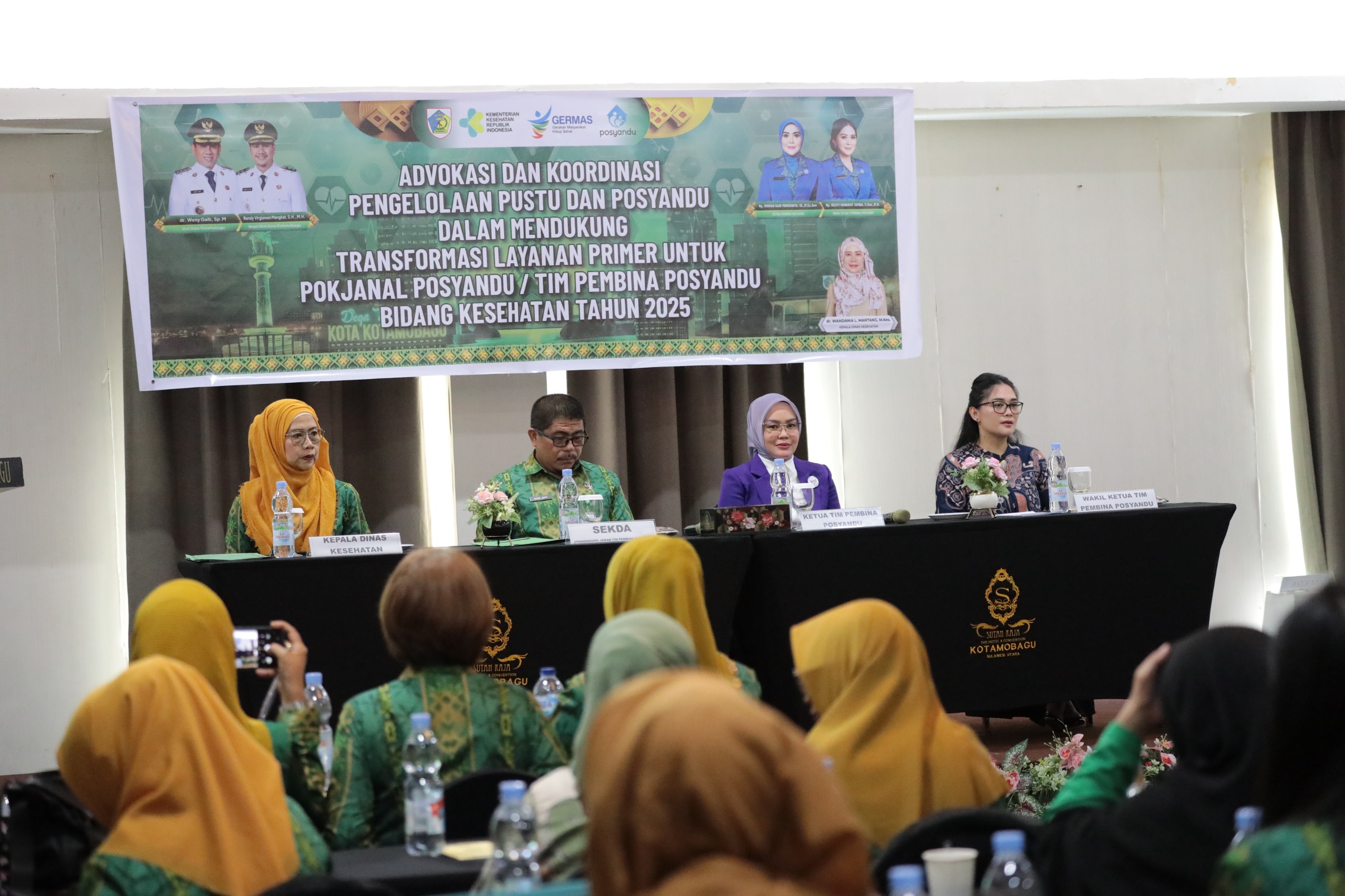 Metrobatam.com, Kotamobagu – Ketua Tim Pembina Posyandu Kota Kotamobagu, Ny. Rindah Gaib Mokoginta, S.E., M.Ec.Dev., bersama Wakil Ketua Tim Pembina Posyandu Kota Kotamobagu, Ny. Resty. A. Mangkat Somba, S.Sos., M.H., Hadiri Advokasi Pengelolaan Pustu dan Posyandu dalam mendukung Layanan Primer untuk Pokjanal Posyandu / Tim Pembina Posyandu Bidang Kesehatan Tingkat Kecamatan se – Kota Kotamobagu, Kegiatan ini berlangsung, Kamis 18 Desember 2025, Sutanraja Hotel, Kota Kotamobagu