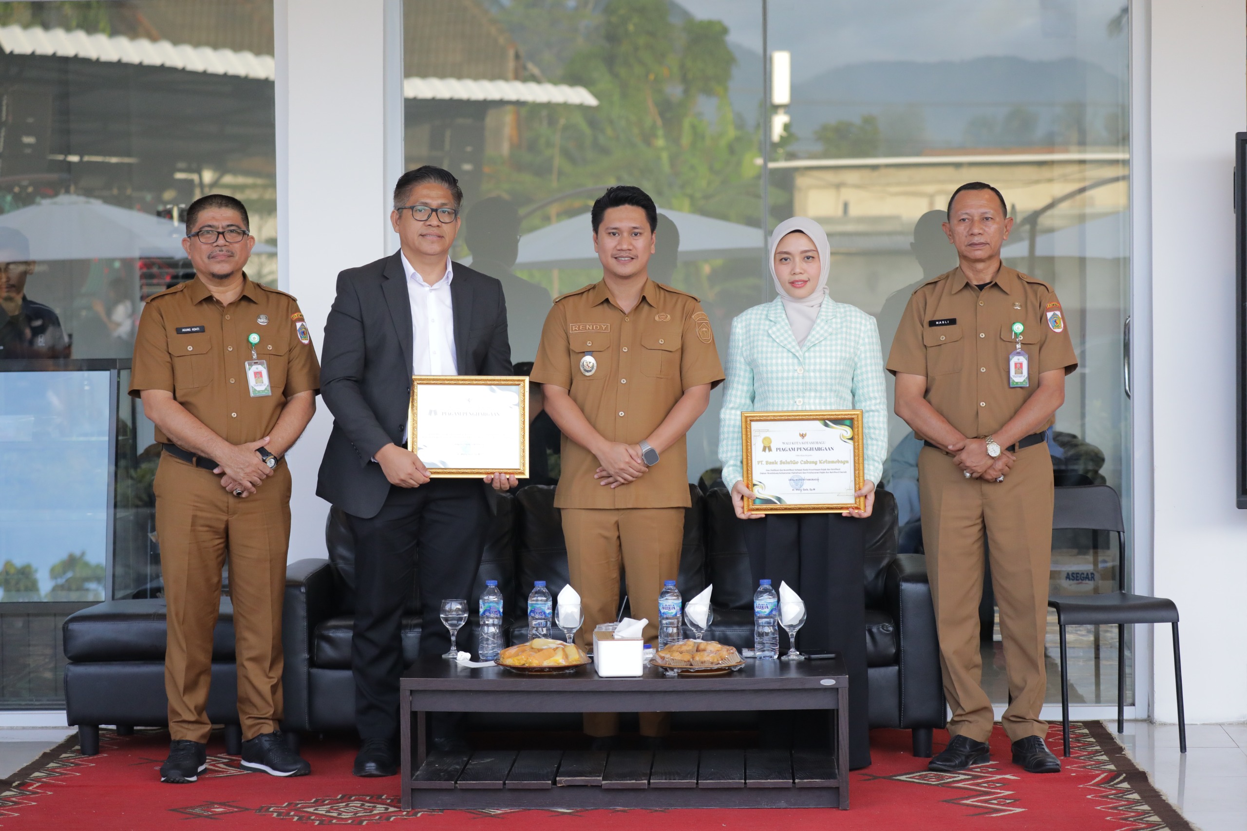Gathering Pajak Daerah dan Penyerahan Piagam Penghargaan kepada Wajib Pajak Terbaik Tahun 2025, turut dihadiri Anggota DPRD Kota Kotamobagu, Titi Jonatan Gumulili, Asisten 1 Pemerintah Kota Kotamobagu, Nasli Paputungan, S.E., Asisten III Pemerintah Kota Kotamobagu, Moch. Agung Adati, S.T., M.Si., Akademisi, Dhullo Afandi, S.E., Ak., M.M., Pimpinan PT. Bank SulutGo Cabang Kotamobagu, Elisa Mokoginta, S.E., Pimpinan BRI Cabang Kotamobagu, Cepi Epianto, Pimpinan BNI Cabang Kotamobagu, Rommy Wahido, Perwakilan Perbankan di Kota Kotamobagu, Kepala BPKAD Kota Kotamobagu, Pra Sugiarto Yunus, S.P., M.E., para Camat, Lurah dan Sangadi, para pelaku usaha dan Masyarakat.