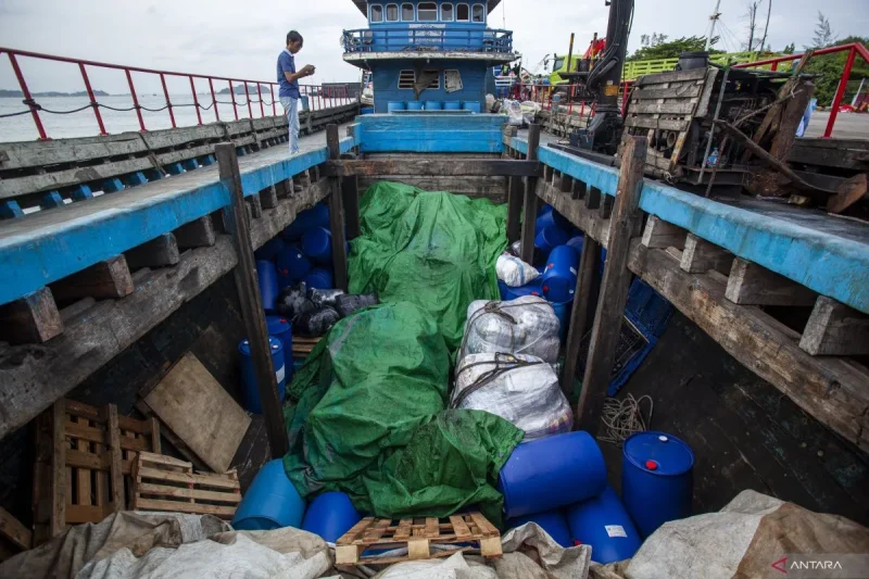 Dalam pengungkapan tersebut, polisi mengamankan dua kapal berbendera Indonesia yang membawa muatan daging dan sejumlah barang lainnya.