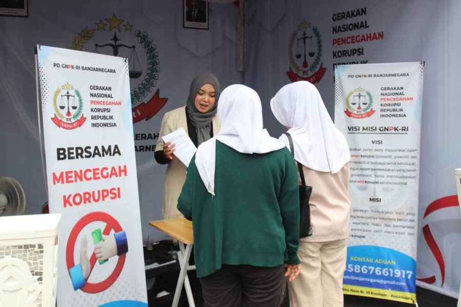 Sebagai bagian dari upaya pencegahan, GNPK-RI Banjarnegara juga membagikan stiker berisi kontak aduan, materi edukasi korupsi, serta visi dan misi organisasi kepada pengunjung Pasar Rakyat.
