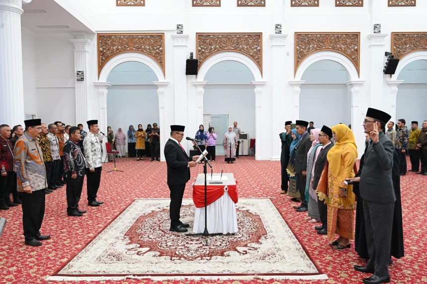 METROBATAM.COM, BUKITTINGGI — Wali Kota Bukittinggi, Ramlan Nurmatias, lantik enam Pejabat Pimpinan Tinggi Pratama di lingkungan Pemerintah Kota Bukittinggi. Prosesi pelantikan berlangsung di Balairuang Rumah Dinas Wako, Kamis, 8 Januari 2026.