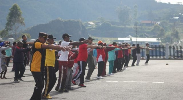 METROBATAM.COM, PUNCAK JAYA – Suasana penuh semangat mewarnai kegiatan Senam Jumat Jantung Sehat Gabungan yang diikuti puluhan warga dari berbagai kalangan, termasuk aparatur sipil negara (ASN), instansi vertikal, tenaga honorer hingga pimpinan organisasi kemasyarakatan di Kabupaten Puncak Jaya, Kecamatan Ilamburawi, Papua Tengah, Papua, Jumat (27/2/2026).