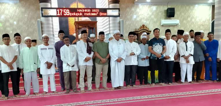 Bupati Iskandarsyah dan Wakil Bupati beserta rombongan Buka Puasa Bersama dan Sholat Magrib di Masjid Darul Jannah Teluk Air.